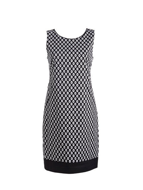 Shift dress  round neck  Tile Print  black border on hem 97% Cotton 3% Spandex
